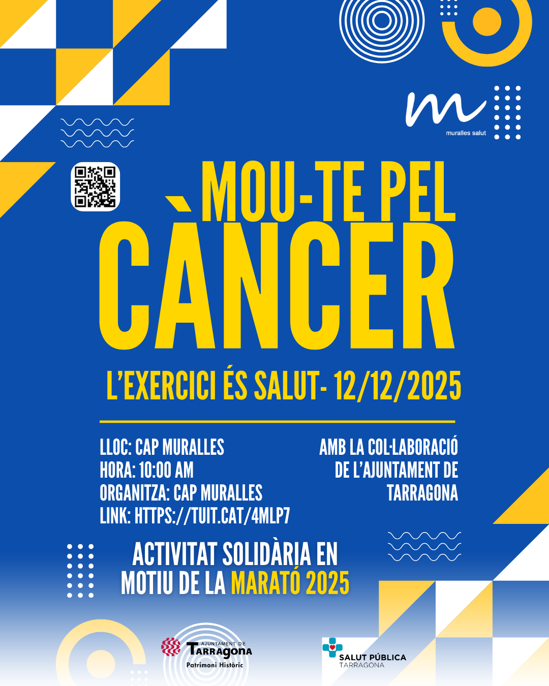 El proper divendres 12 de desembre, a les 10h, t’esperem al CAP Muralles per participar en una caminada solidària en suport de La Marató 2025, aquest any dedicada al càncer.